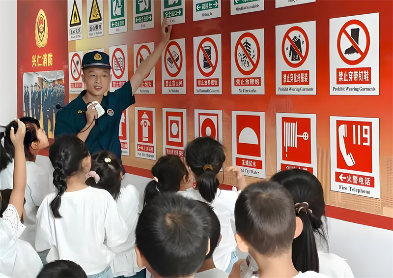 兴仁市消防救援大队组织辖区小学生走进消防队参加暑期“消防开放日”,消防员通过现场演示、互动教学,系统讲解火灾预防、报警方法、火场逃生技巧等内容,沉浸式体验有效提升了未成年人的消防安全意识和应急处置能力;册亨县开展“快乐暑假·安全童行”关爱活动,将安全教育融入趣味实践;晴隆县莲城街道通过摆摊设点及入户走访开展禁毒反诈宣传;望谟县郊纳镇纳江社区通过警示教育片展播和“理论+案例”宣讲引导孩子提高安全防范能力。