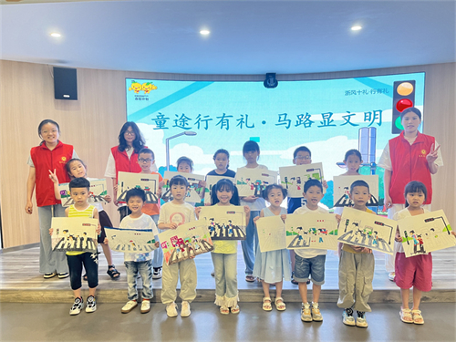 工作人员从文明出行的重要性、常见不文明现象及践行方式等方面展开知识讲解,继而通过问答环节帮小朋友掌握交通规则。之后组织了“文明出行童画绘”活动,以趣味绘画加深孩子们对文明出行场景的印象,在轻松创作中提升他们主动践行的意识,让安全理念更深入内心。