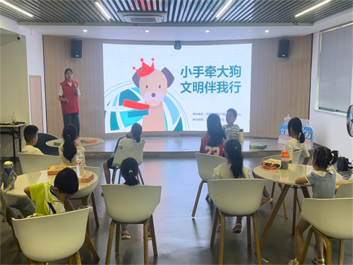 工作人员先围绕文明养犬的重要性、方法及与宠物正确互动等内容进行知识讲解,继而通过问答环节帮助小朋友掌握相关知识。之后开展了“犬守文明·凳上争锋”小游戏和“文明养犬绘布袋”绘画活动,以多元的活动形式进一步强化小朋友们对文明养犬的认知。