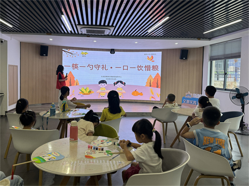 工作人员先讲解了文明用餐的重要性,介绍了“光盘行动”的意义及“公筷公勺”使用规范,再通过问答互动让孩子们巩固知识、深入体会文明用餐理念。随后开展了“文明用餐宣传卡DIY”活动,大家将“文明用餐”“拒绝浪费”等理念融入设计,进一步深化孩子们“珍惜粮食、文明用餐”的好习惯。