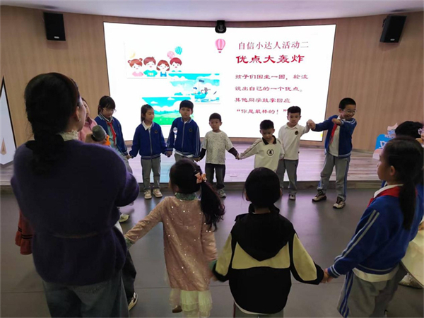 接着是“优点大轰炸”互动游戏,孩子们围坐一圈,通过引导孩子们轮流说出自己的优点,其他孩子鼓掌回应“你是最棒的!”培养孩子们自我肯定和欣赏他人优点的美好品德。