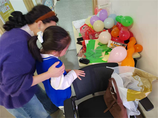 随后,赵老师和孩子们一起放飞情绪气球。在柔和灯光的活动室里,大家捧着五彩气球,在轻声倒数后一同松手。气球慢悠悠地向上飘起,有的靠近天花板,有的在半空轻晃,孩子们仰着小脸追视,脸上满是雀跃。