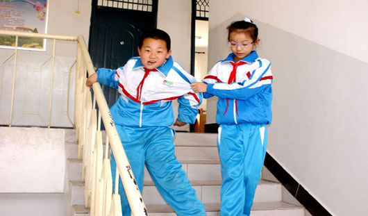 从新生入学第一天到四年级,不管是上学还是下课路上,郭欣灵总是搀扶着徐帆。一个搀扶,四载春秋,校园中上演着一场感人的同学情。