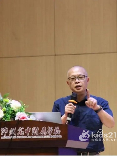 (右)成都市教科院基础教育研究所原所长、四川新世纪品格教育研究院学术院长杨霖作专题讲座。