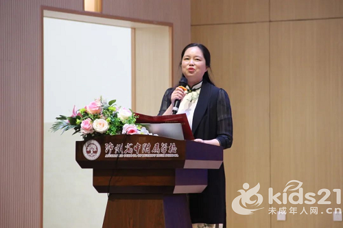 (左)教育部基础教育外语教学指导专业委员会副主任委员、四川省教育科学研究院副院长董洪丹讲话。
