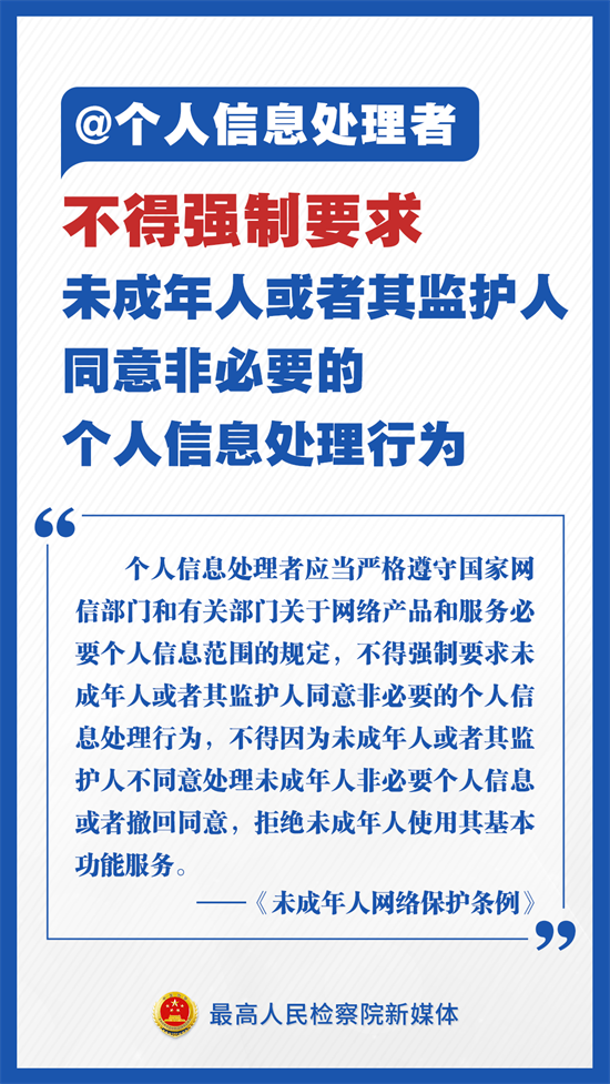 近日,国务院公布《未成年人网络保护条例》,自2024年1月1日起施行。条例共7章60条,重点就网络素养促进、网络信息内容规范、个人信息网络保护、网络沉迷防治等方面作出规定。其中包括,不得通过网络对未成年人实施侮辱、诽谤等网络欺凌行为;不得为未成年人提供游戏账号租售服务;建立网络直播发布者真实身份信息动态核验机制……一起来看!