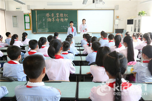 未成年人网四川讯(通讯员叶小梅)“红军不怕远征难,万水千山只等闲。 五岭逶迤腾细浪,乌蒙磅礴走泥丸……”9月1日,泸州市合江县人民小学六一班的孩子们整齐朗诵着毛主席的著名诗篇《七律 长征》,铿锵的语音响彻校园上空。