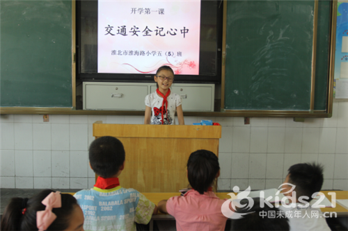 淮海路小学处在主城区,学生每天与密集的车流同行,路况复杂、安全隐患多,为了加强对学生交通安全知识的普及,淮海路小学大队部组织召开此次主题队会活动。在五(5)班对会上,班主任老师以有奖问答的形式给学生上交通安全课,提醒他们关爱生命、文明出行。在交通安全知识竞赛互动游戏,通过与学生互动问答的方式,让学生们熟悉基本的交通标志、标线。从安全防范教育上入手,告诫学生在行车、走路时,要留心观察路面情况,不能在道路上追逐打闹,更不能与机动车争道抢行。在活动的尾声班主任老师还要求同学们把交通安全知识带回家,提醒自己的家人,亲友坚决抵制交通陋习,带动家庭成员共同参与文明交通。