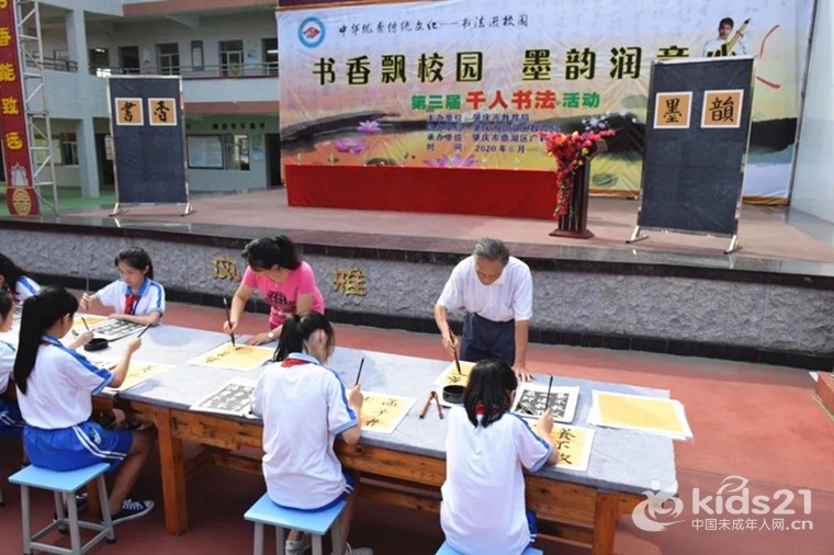 肇庆市书法名家进校园暨千人书法活动在鼎湖区广利中心小学举行