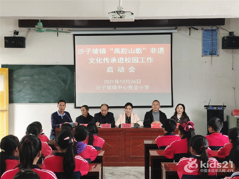 10月26日,沙子坡镇“高腔山歌”非遗文化传承进校园工作启动会在沙子小学开展。沙子坡镇党委委员、组宣统委员谭亚丽、县青少年活动中心主任涂文辉、县音乐协会主席王昭美、省级非物质文化遗产高腔山歌传承人刘朝英、镇中心校校长刘小锋、学校全体行政及学校50余名“高腔山歌”传唱学生参与活动。