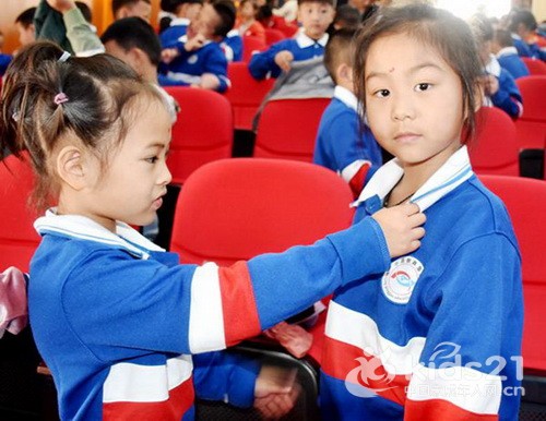 辅导员老师还带领孩子们宣誓:“好好学习,天天向上”“快乐学习,健康成长”“我是小学生,每天都向上”……宏亮而整齐划一的童声在报告厅中回荡。