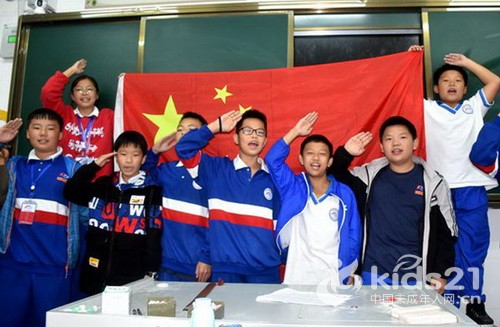 活动启动后,校园内便掀起一阵与国旗合影的狂潮。校团委准备了10多面国旗,方便同学们与国旗合影。同学们积极参与,操场上、旗台前、教室里、走廊上,校园很多地方都成了与国旗合影的最佳背景。大家充分发挥自己的奇思妙想,摆出形式多样的动作、造型:有的歌唱《我和我的祖国》,有的朗诵《祖国,妈妈》,有的高呼“我爱你中国”“祖国母亲,生日快乐”等口号……还有师生一起与国旗同框,老师讲解国旗知识。