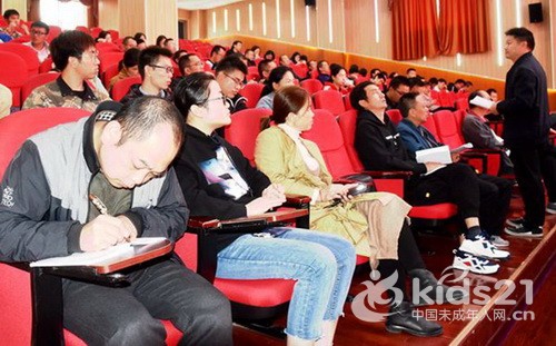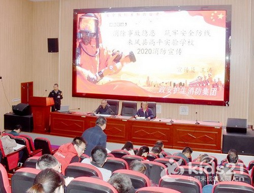 恩施州正安护生消防集团教官王涛为教职员工讲解消防安全知识