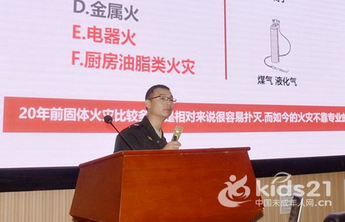 期间,王教官不时插播相关的消防图片和视频资料,一边讲解一边提问,引发大家的思考,调动大家学习的热情。“指导学生火场或地震逃生,我们要着重强调哪几点呢?”“遇火场,捂口鼻、猫腰、扶墙、快速跑向空旷地带。遇地震,双手还要护住头部。在楼梯间还要预防发生踩踏事件。”“油锅起火,不可用水去扑灭,用锅盖也无法完全灭火,用灭火毯最好。”大家纷纷抢答王教官的提问。
