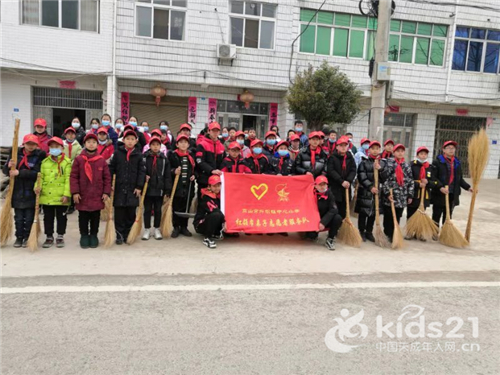 湖北:京山坪坝镇小学亲子志愿者给“红领巾一条街”“美容”