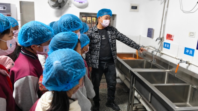 湖北十堰市竹山县宝丰镇双坝小学:学生深入食堂后厨探秘 共同守护舌尖安全