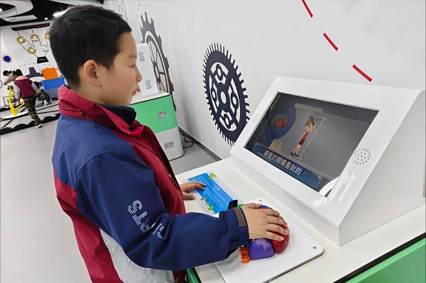 在声光之绚、电磁之奥、运动之律等展区,学生们一边认真聆听展教老师的讲解,一边积极动手操作,沉浸式探索波的产生与传播规律,了解声音的振动、光线的折射、电磁波的应用、向心力和离心力的作用等,抽象的科学原理在亲身实践中转化为具体可感的体验。
