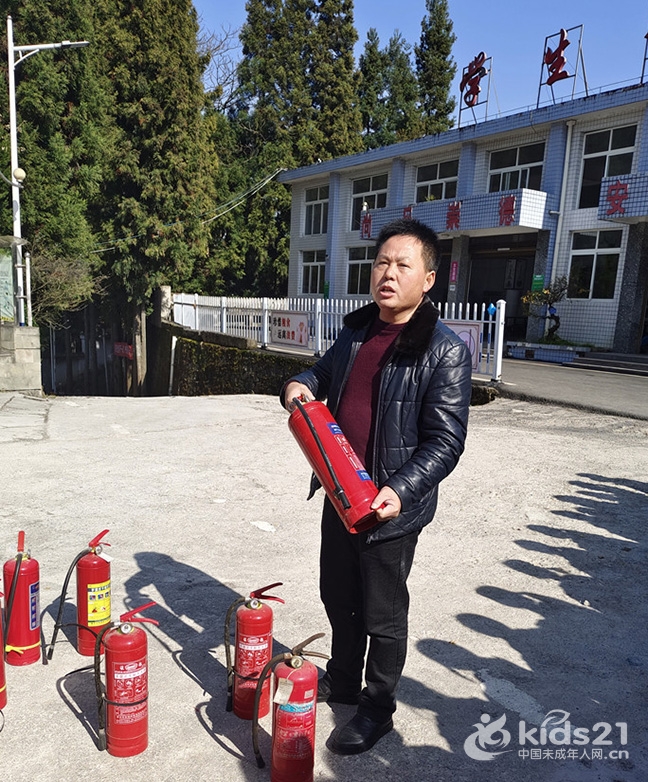 校长牟艳彬讲解干粉灭火器的正确使用方法