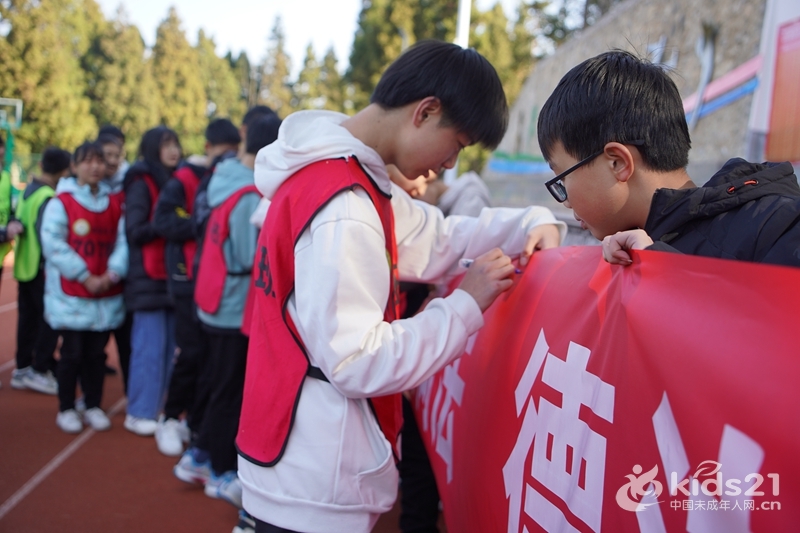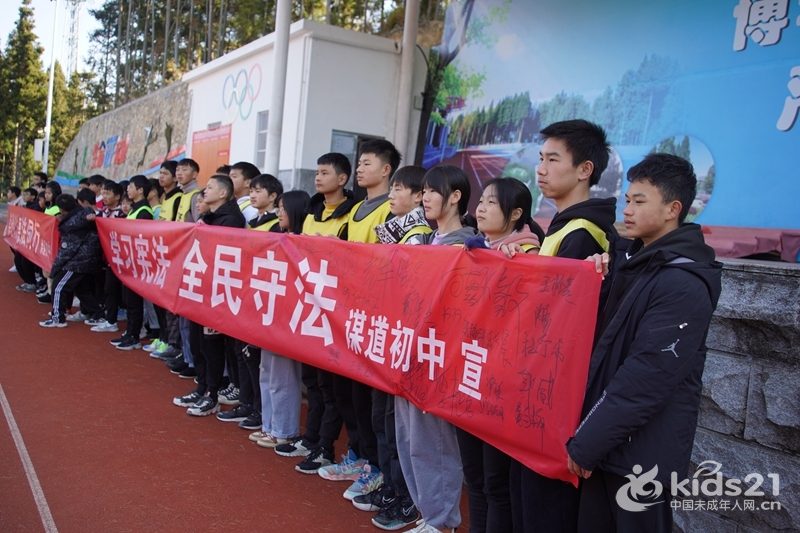 仪式上,同学们在写有“学习宪法 全民守法”“崇德尚法 德法同行”的主题横幅上庄重签下自己的名字,做出自己永远忠于宪法和法律、维护宪法权威的庄严承诺!