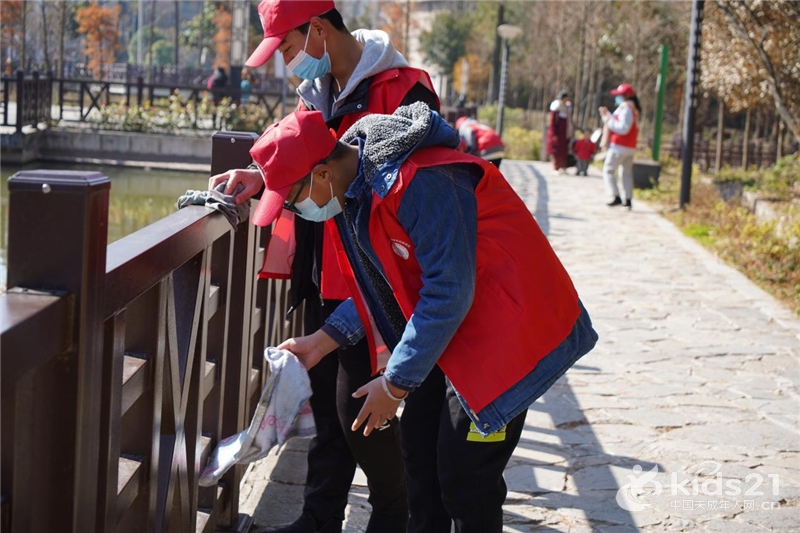 活动中,志愿者们身穿红马甲,头戴小红帽,手拿扫帚、垃圾夹、垃圾桶等清洁工具,仔细清理草丛、栈道等位置的果皮纸屑、烟头等垃圾。一些无法使用工具清理的地方,志愿者们用手代替工具,将死角里的垃圾清理出来。通过近2个小时的努力,志愿者们捡起白色垃圾10余桶。除此之外志愿者们还将公园里面的座椅、护栏等进行了清洗擦拭。