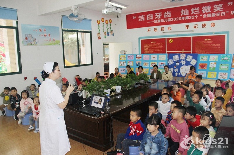 9月18日,长沙市天心区楚湘幼儿园开展“洁白牙齿,灿烂微笑”9·20全国爱牙日宣传活动,并邀请长沙市第一医院杨慕峰医生走进校园开展口腔健康讲座。