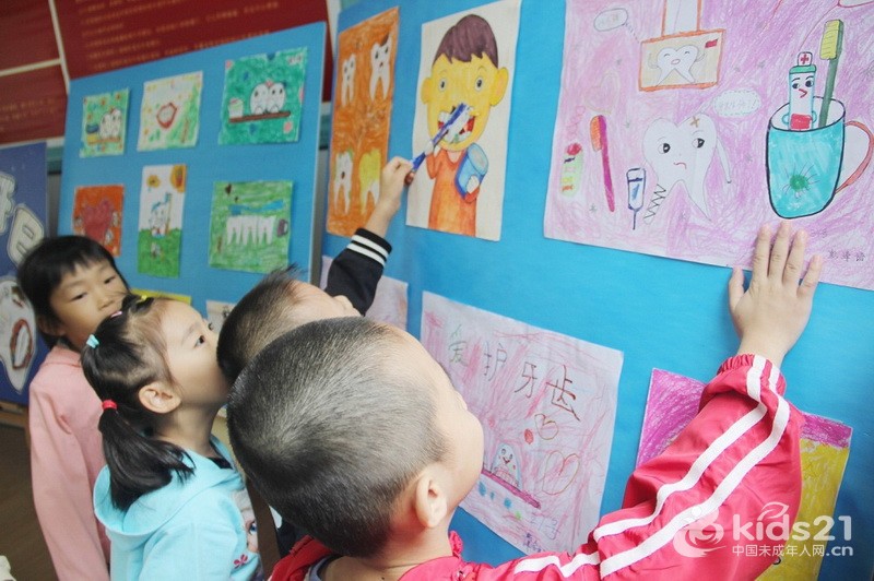 孩子们通过绘画了解保护牙齿的方法
