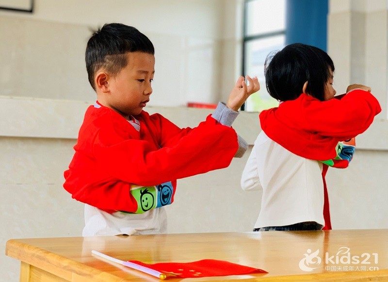 中班幼儿快速穿好园服,整理仪表