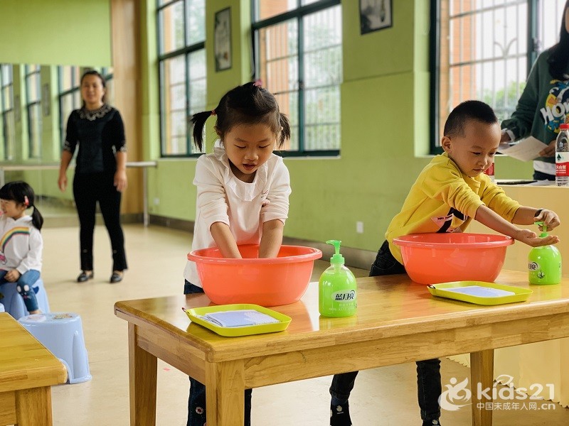 中班幼儿进行“七步洗手法”比赛