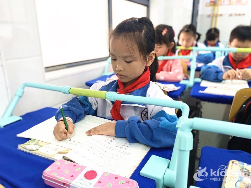 老师也反映自从配备了矫正器,学生的写字与阅读的姿势有了明显的改善,弯腰驼背的学生少了,抬头挺胸的学生多了,学生不再趴着写作业了。