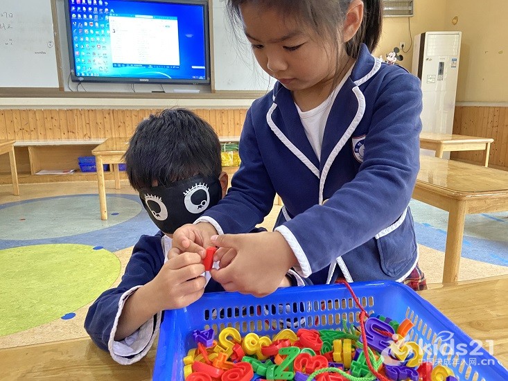 活动开始,老师播放了相关视频,让幼儿了解到盲人的日常生活,小朋友们纷纷表示:“原来盲人的生活是这样子的,我以后要多多帮助他们。”