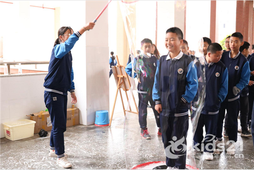 孩子们在科技体验场体验“泡泡秀”项目