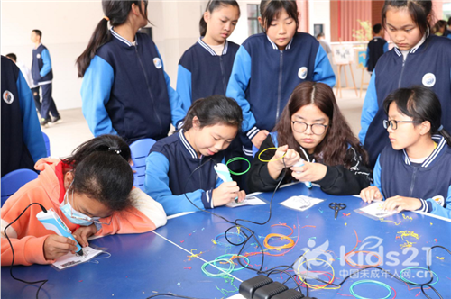 孩子们在科技体验场体验“三D打印”项目