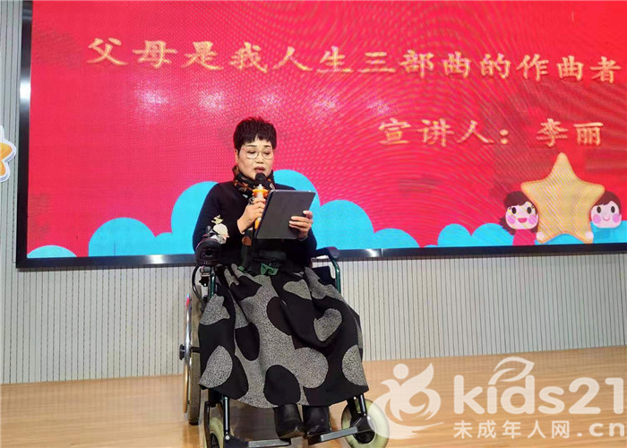 之后,全国道德模范提名奖获得者、湖南省道德模范、湖南李丽心灵教育中心发起人李丽以《父母是我人生三部曲的作曲者》为题,从自己儿时患小儿麻痹症说起,讲述了她在艰难困境中愈发茁壮成长和努力奋斗的故事。