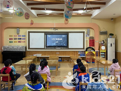 幼儿正在观看公祭日相关视频。