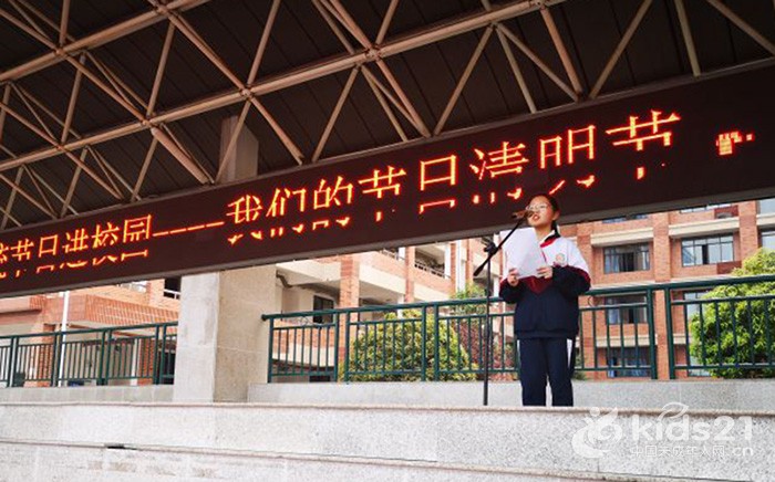 1911中队王语涵同学上台宣读了清明节文明祭扫倡议书,号召大家文明、科学、环保、安全地进行清明祭祀活动,用文明缅怀、关爱他人的实际行动,表达对先祖、先贤、先烈的怀念之情。
