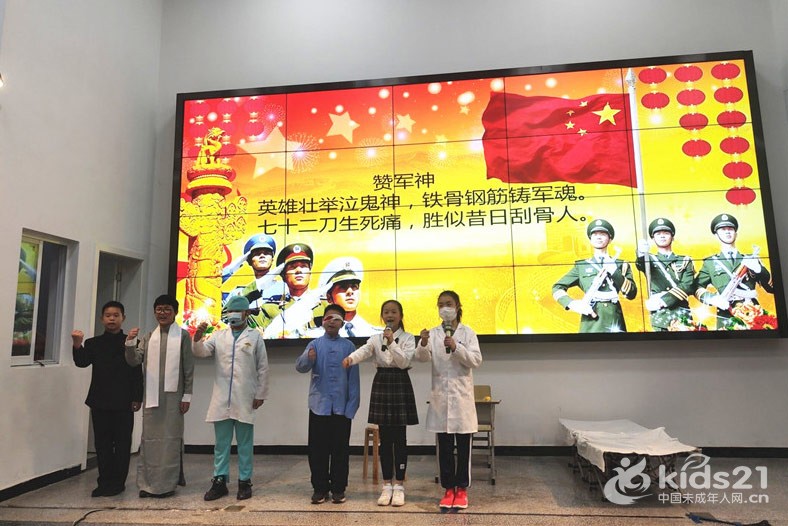 在老师和同学们的精心筹备下,20余个节目一一呈现在全校观众面前。《草船借箭》《刘姥姥进大观园》《完璧归赵》等课本剧表演,让孩子们用沉浸式体验的方式走进名著,体会传统文化的魅力;《花》《迎春》等诗歌朗诵节目,又把孩子们拉回现代,感受语言的魅力;同时,读书节活动还围绕“建党100周年”开展了红色主题教育,《没有共产党就没有新中国》的朗诵带领着全校师生一起走进由中国共产党带领全国人民浴血奋战的那段峥嵘岁月;《军神》课本剧表演展现了一段催人泪下抗战故事;《祖国你好》《童心向党》等节目,则展现了对新时代中国共产党为人民谋幸福,为民族谋复兴的歌颂。
