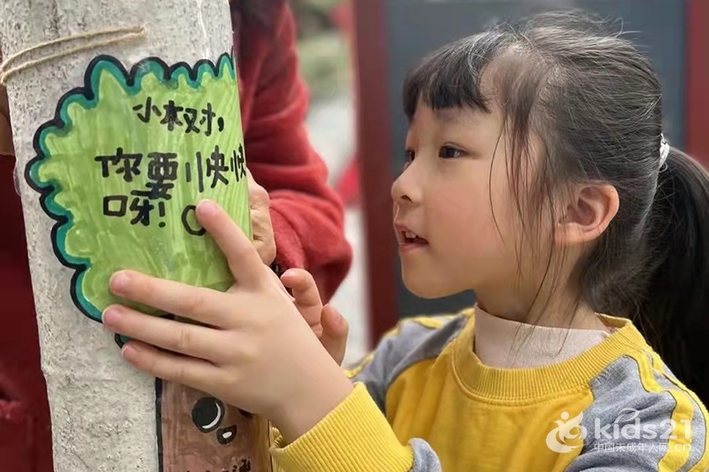 孩子们为树木挂上“护树牌”