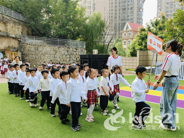 随后来到各班级的队列展示环节,各班级的小朋友们精神抖擞,迈着整齐的步伐,从操场东侧雄赳赳、气昂昂地行进至升旗台前。他们队列整齐划一,口号声铿锵有力,在幼儿园上空久久回荡,充满了对祖国的无限崇敬与热爱。孩子们眼神坚定,笑容灿烂,稚嫩的脸庞上洋溢着自豪与激动,展现了新时代少年儿童的蓬勃朝气与爱国情怀。