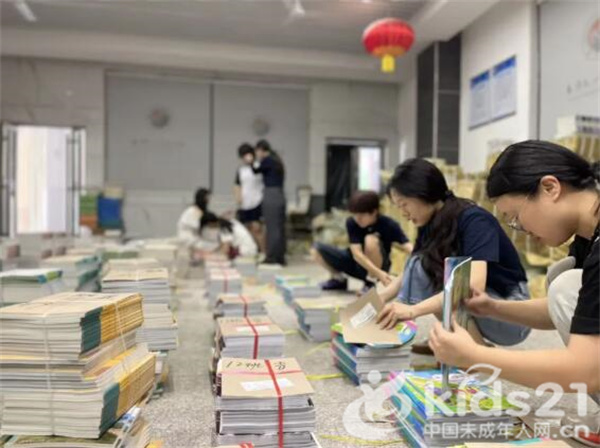 分书领书时,崭新课本承载着新学期的期待。