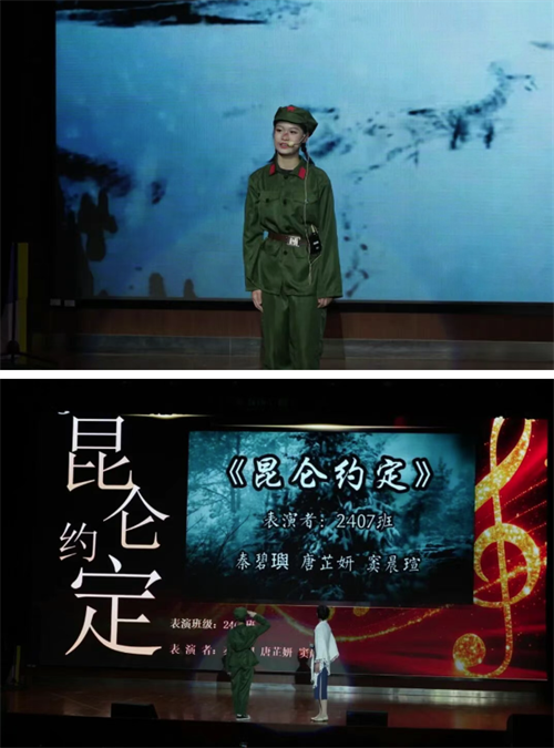 语言类节目则以声传情,直击人心。2407班的朗诵《昆仑约定》,深情讲述昆仑雪线之上,守护者们把青春焊在界碑旁、把誓言熔进山河里的动人故事,字里行间满是家国情怀,令人动容。
