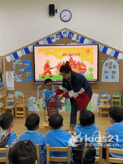 “火警电话是多少?”“是119!”小朋友们齐声高呼。灭火器也不再是冷冰冰的工具,老师们手把手教孩子们如何正确使用它。