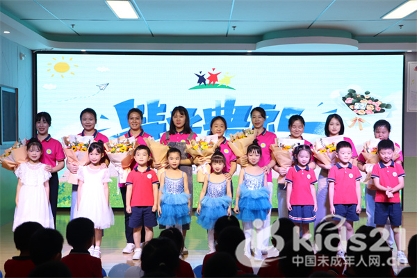 在精心布置的舞台上,孩子们唱响《毕业歌》、齐诵《毕业诗》,并给老师们献上最美的花束,尽情表达对幼儿园的祝福和对老师的依依不舍。所有美好的记忆定格在此刻。
