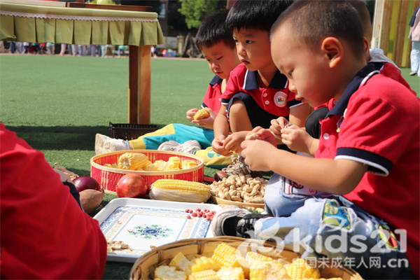 红色文化,厚在底蕴;劳动体验,美在过程。小班幼儿将晒干的玉米、花生一粒粒剥下,用小手轻轻拍去红薯、南瓜等粮食上的泥土,通过实际操作感受“春生夏长,秋收冬藏”的自然规律,体验“自己动手,丰衣足食”的劳动过程,学会感恩与珍惜。