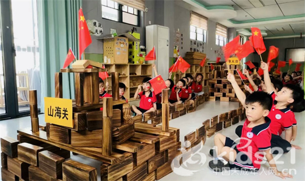 万里长城今犹在,锦绣河川更峥嵘。大班幼儿通过集体活动了解长城后,各班团结合作,用积木搭建“万里长城”,感受长城的蜿蜒壮阔和它的历史韵味,为自己是中国人而感到骄傲。