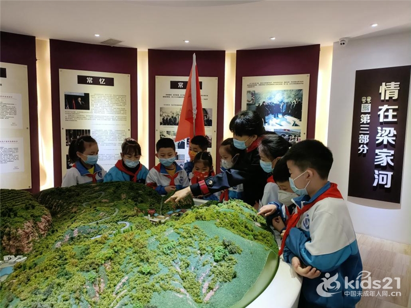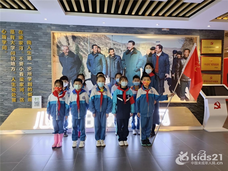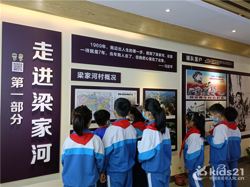 青年党员付老师告诉孩子们:梁家河村位于革命圣地延安,40多年前,习近平爷爷就在这个沟壑纵横、土地贫瘠、生产生活条件都十分艰难的陕北高原小村,度过了七年艰苦磨砺、拼搏奋斗的火热青春。他团结带领梁家河村党员群众打坝淤地、打井汲水、建沼气池、修公路,创办磨面坊、铁业社、缝纫社、代销店……以顽强意志战天斗地,改变山村落后面貌,留下了永恒的历史印记!