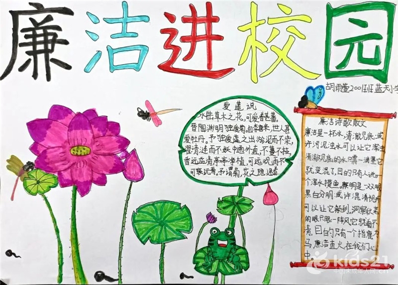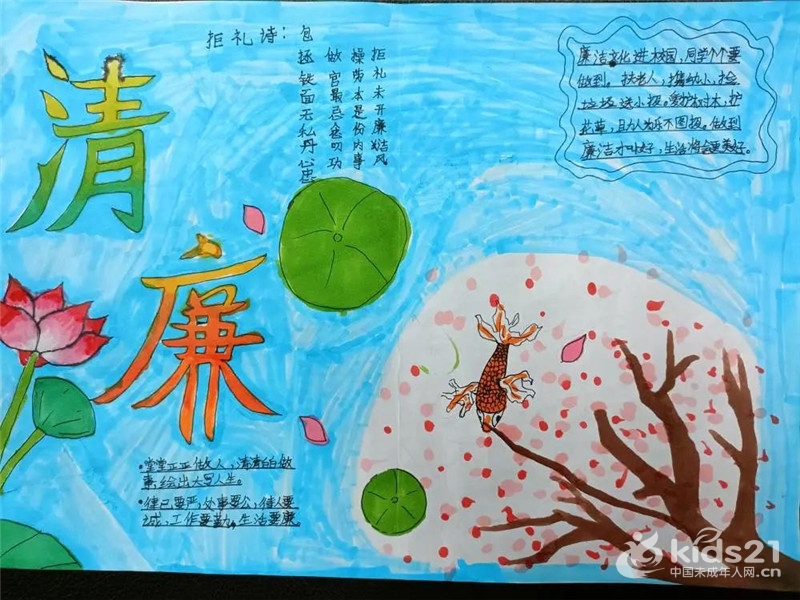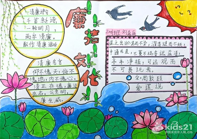 为全面推进清廉学校文化建设,浓厚清廉学校文化建设氛围,5月初以来,长沙市天心区蓝天小学开展了“清廉校园”主题系列活动,通过绘制“清廉”小报、绘画、征文综合实践活动,把“廉洁文化进校园”教育活动融入学校德育工作。学生们用一张张设计精美、图文并茂、内容丰富的作品深刻诠释了“崇清尚廉,做新时代好少年”的决心。让我们一起来欣赏一下这些“小小艺术家”的优秀作品吧!