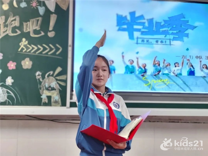 校党支部书记胡健对本次活动进行了总结并进行动员,希望孩子们能把握时间,坚持学习,在小升初的考场上沉着冷静,工整书写,不留下任何遗憾。紧接着,她还带领着毕业生们郑重宣誓:超越自我,提高效率,勇创辉煌;用奋斗放飞希望,用信念实现梦想;让青春绽放最美丽的光芒!我行,我能,我必成功!