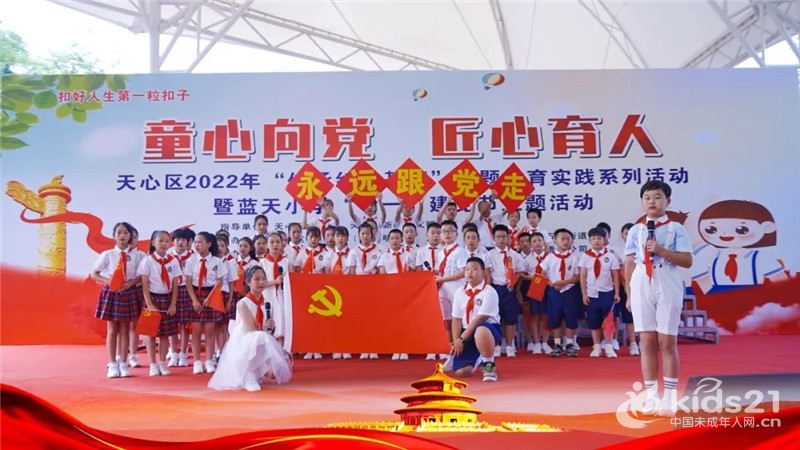 此次“童心向党、匠心育人”庆七一主题教育活动,是一次深刻的党性教育、思想洗礼和精神激励,大大增强了全校师生的民族自信心和责任感,坚定了队员们的爱国热情,在孩子们的心灵里播下爱党、爱国的种子。(长沙市天心区蓝天小学 田丰)