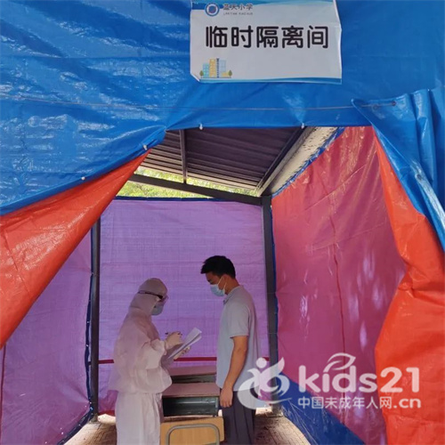 早上7:40,学生错峰、间隔“一米线”进行手部消毒后有序入校,进入“红外线热感测温区”进行体温检测。入班时,进行第二次体温测量。上课时,学生出现身体不适,老师用额温枪测量体温,确认高出正常体温,班主任立即报告学校卫生防疫部门,卫生老师将其引导到隔离室。卫生老师重新用水银体温计再次对其进行体温测量,确认体温高于37.3℃,卫生老师上报学校分管校长,启动疫情防控应急预案。