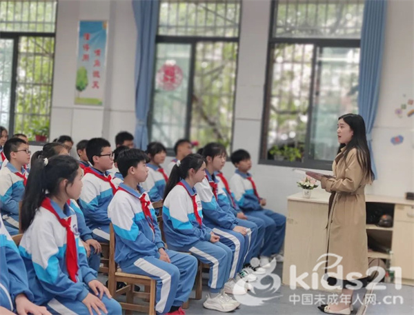 党支部副书记唐佳跟孩子们分享读《西游记》的感想,唐老师用孙悟空的故事温柔寄语毕业班的孩子们,希望孩子们头上有“紧箍咒”——守规矩,手上有“金箍棒”——有本事,心中有信念——有理想,在今后的学习生活中,随时携带这三件“法宝”,努力奋斗,做新时代的好少年。